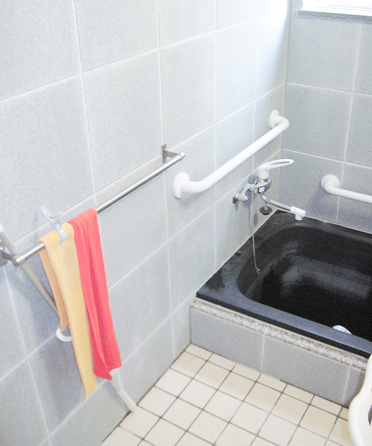 お風呂場に入り、浴槽に浸かるまでの動きだけではなく、介助歩行を含めたお風呂に入るまでの動線にも配慮いたします。動線をできるかぎり短く、スムーズにすることによって、介助される方だけでなく、介助する方の負担も軽減されます。